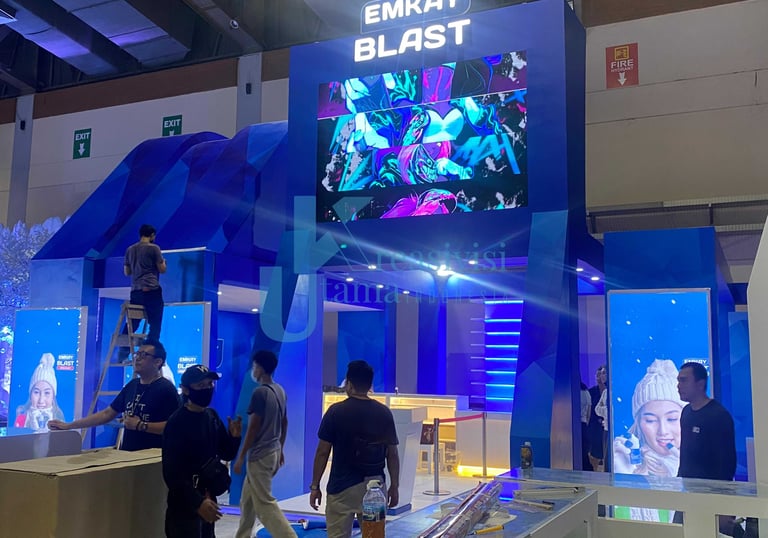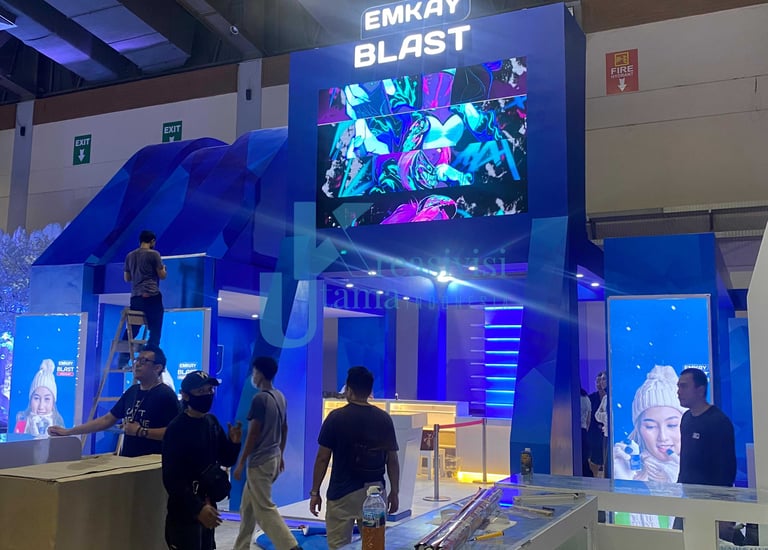 Kami menyediakan jasa pembuatan, design 3D dan pemasangan custom booth untuk pameran dan exhibition di Jakarta. Desain booth dapat disesuaikan dengan brand dan kebutuhan event, sehingga tampilan stand Anda lebih menarik dan profesional.
