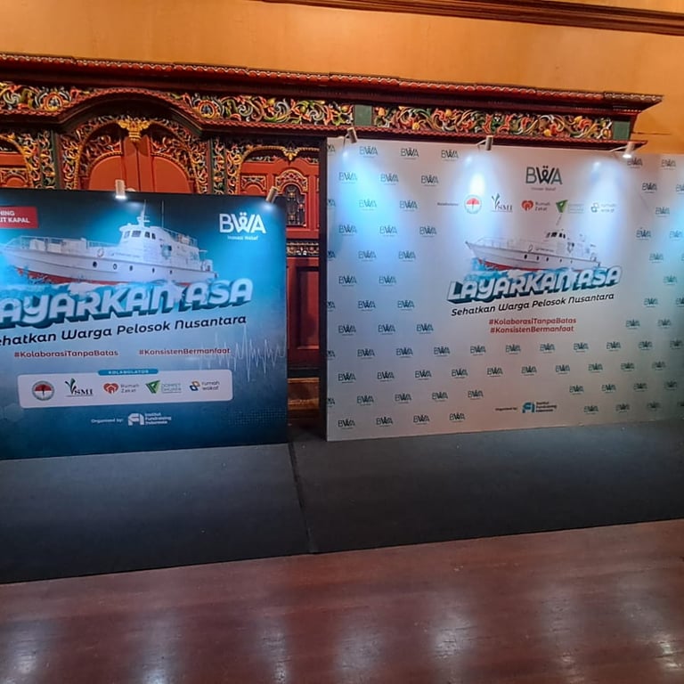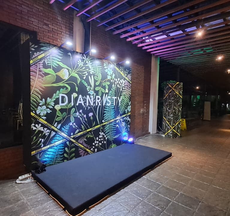 Kami menyediakan jasa pembuatan dan pemasangan custom backdrop untuk panggung, booth, dan photo corner, dengan desain yang bisa disesuaikan dengan tema event Anda.